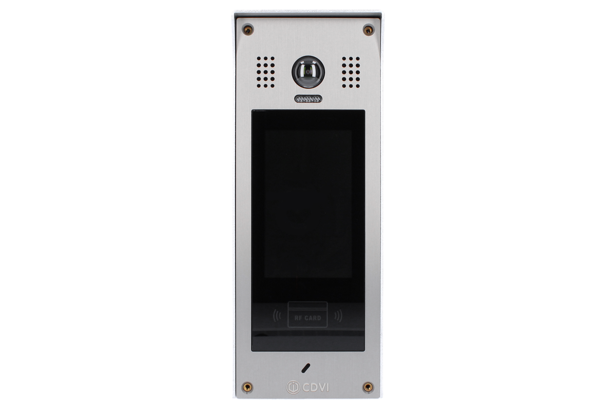 The CDV-850IP is a multiway video door station, part of the 2EASY IP range. It features a 170ยบ fisheye camera, touchscreen menu, and an integral dual technology RF card reader. The IP system facilitates connection through PoE, making the 2EASY IP range seamless and easy to use. In addition, the free mobile app allows users to control access from their phone by receiving calls (when connected to an internet router).