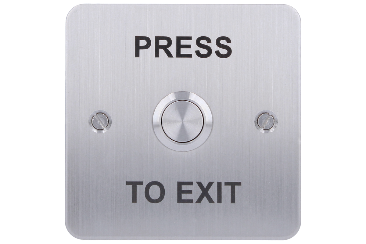This exit device is manufactured in high grade stainless steel, making it a robust and sturdy door release solution. This square model features the words PRESS TO EXIT in green on the face and conforms to the standard UK back-box format to make installations quick and easy.