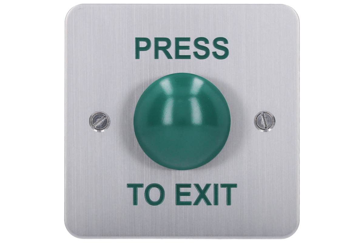 This exit device is manufactured in high grade stainless steel, making it a robust and sturdy door release solution. This square model features the words PRESS TO EXIT in green on the face, as well as a high-impact stainless steel green dome. The RTE-SSD conforms to the standard UK back-box format to make installations quick and easy.