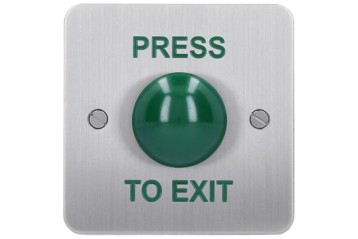 This exit device is manufactured in high grade stainless steel, making it a robust and sturdy door release solution. This square model features the words PRESS TO EXIT in green on the face, as well as a high-impact stainless steel green dome. The RTE-SSD conforms to the standard UK back-box format to make installations quick and easy.