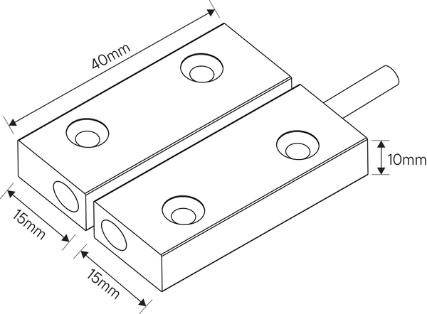 This surface mounted magnet contact can be used in security systems up to and including grade 2 and environmental class II as specified in EN50131-1 and is compliant with EN50131-2-6. It operates as a normally closed circuit going open when the magnet is removed. This contact is not suitable for ferrous surfaces