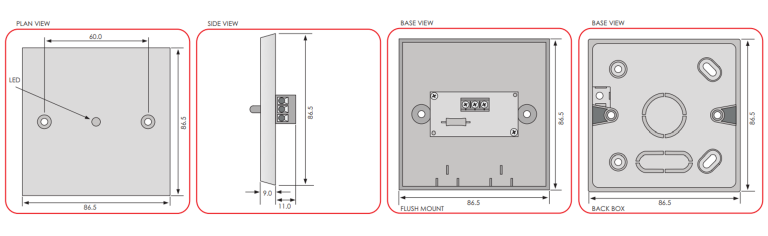 The standard version is a single gang flush mount unit, with or without ‘Fire Detector Operated’ text and also available with a deep back box for surface mounting.