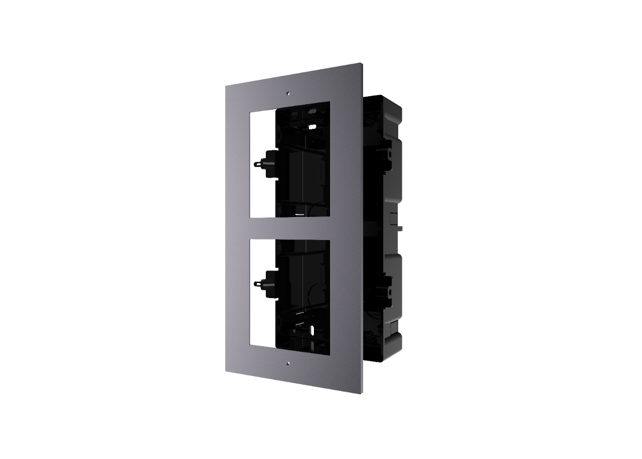 The DS-KD-ACF2 is an outdoor 2 way flush mounting bracket. Designed to be used with the Hikvision modular intercom systems.